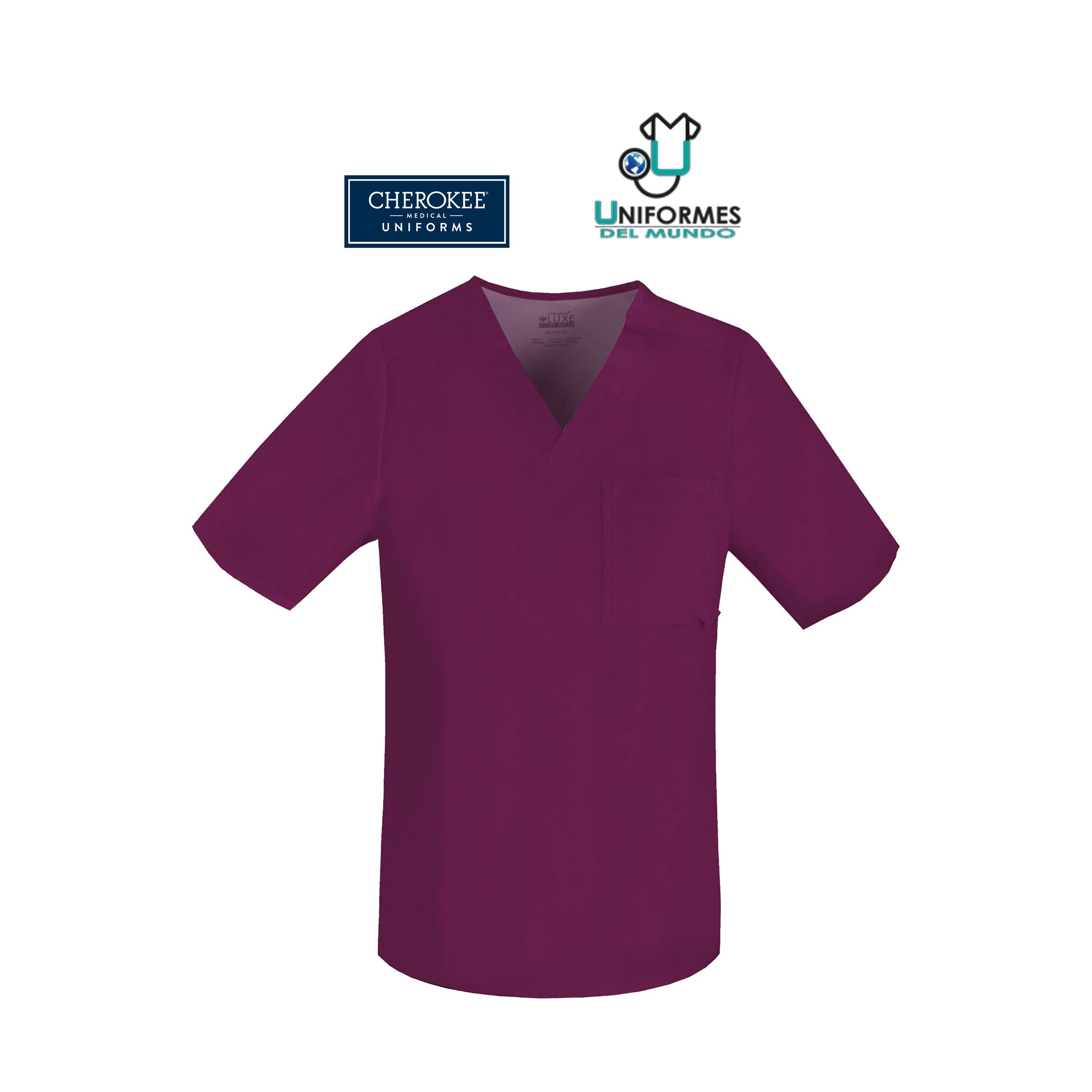 Polera clínica Cherokee Luxe diseñada especialmente para hombres que buscan comodidad y estilo en su entorno laboral. Este modelo cuenta con un elegante cuello en V, ideal para un look profesional. La polera incluye un práctico bolsillo en el pecho, equipado con un pequeño lazo para colgar tu identificación, asegurando que siempre la tengas a mano.