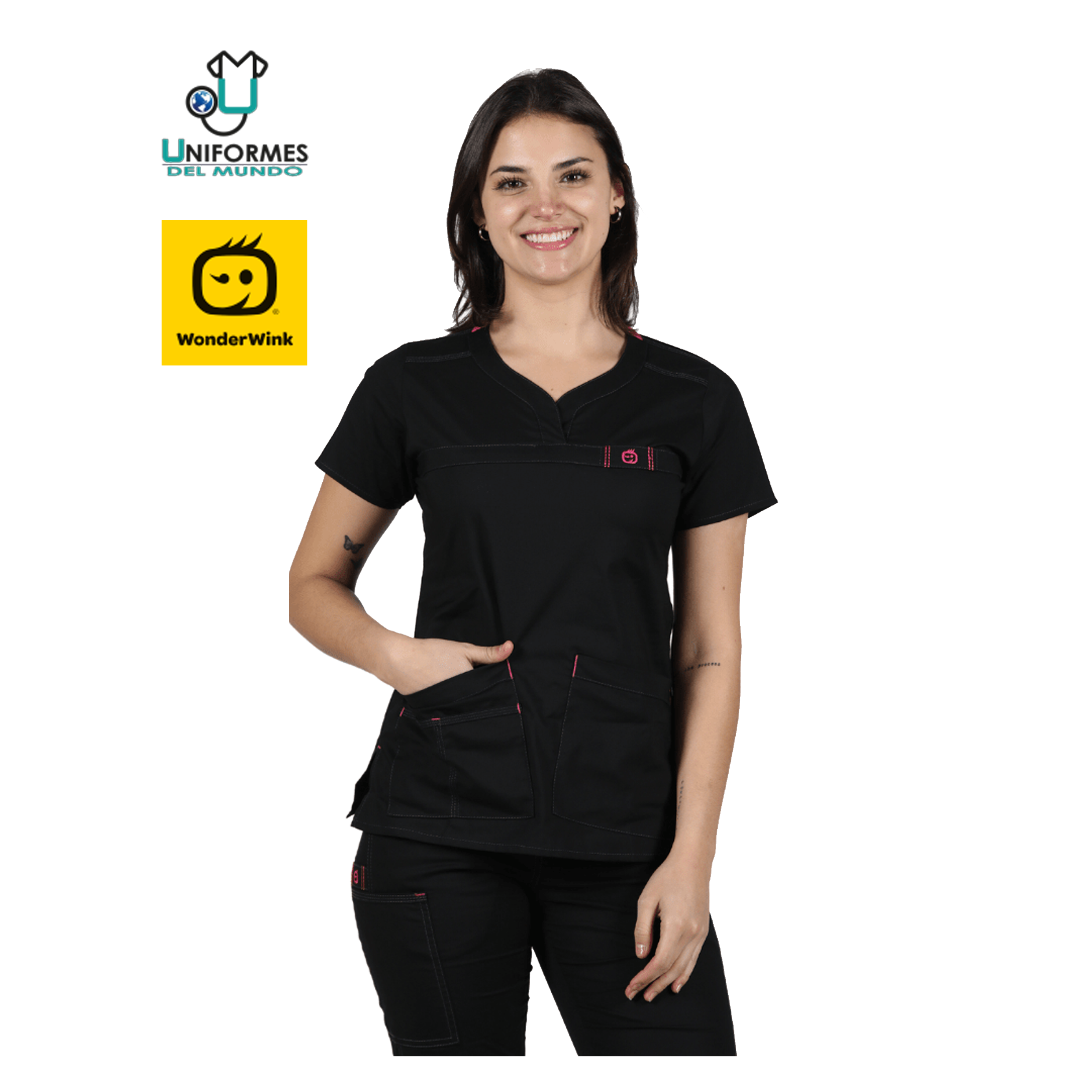 Polera de ajuste moderno, diseñada para ofrecerte un estilo contemporáneo y funcional. Con un cuello en forma de curva que se superpone en el centro del frente, este diseño destaca por su elegancia. Dispone de dos bolsillos delanteros inclinados, incluyendo un práctico bolsillo triple, ideal para llevar lo esencial contigo. Su corte tajalí y hombros estilizados brindan una silueta favorecedora, mientras que el largo de la polera es de 70 cm, perfecto para cualquier ocasión.
